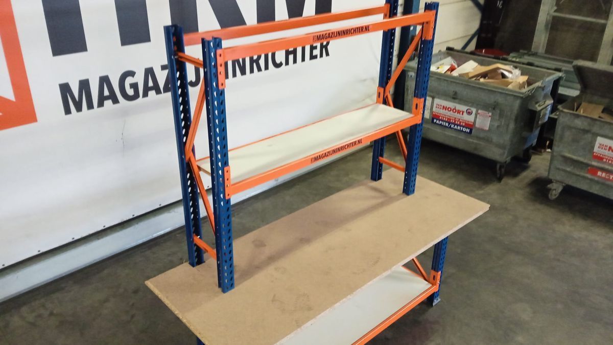 Bastor® HX werktafel 2.550 x 1.000 x 844mm, v.v. 4 niveaus. blauw/oranje, nieuw